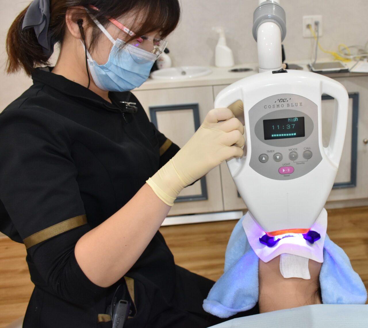 ⑤ホワイトニング剤を塗り 12分×3回 LEDライトを照射