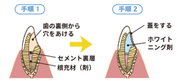 ※選択肢として被せ物を新しく作り直す方法もありますが、ウォーキングブリーチの方が価格を抑えられます!