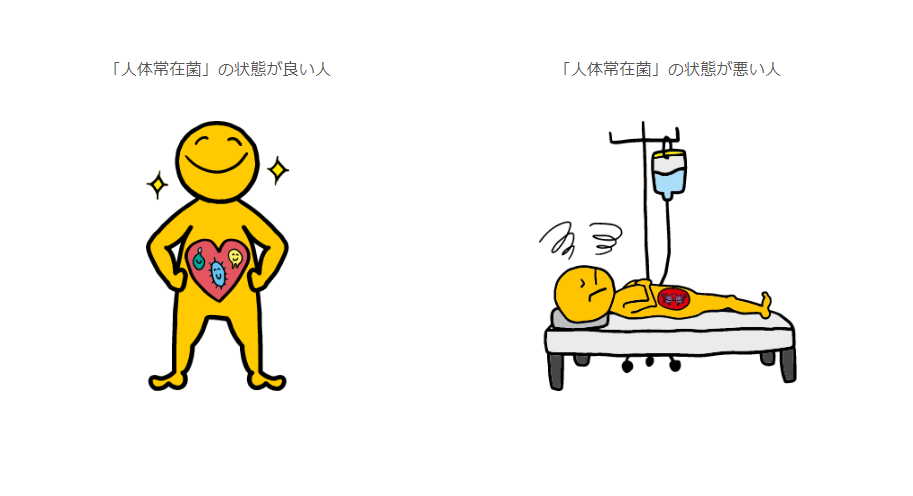 ヒトの体には約500種500兆個以上、重量換算約2kg!! にもなる膨大な量と種類の菌が生息しており、体内菌バランスが「悪玉菌」に優位な状態になってしまうと、様々な病気を引き起こすことがわかっています。